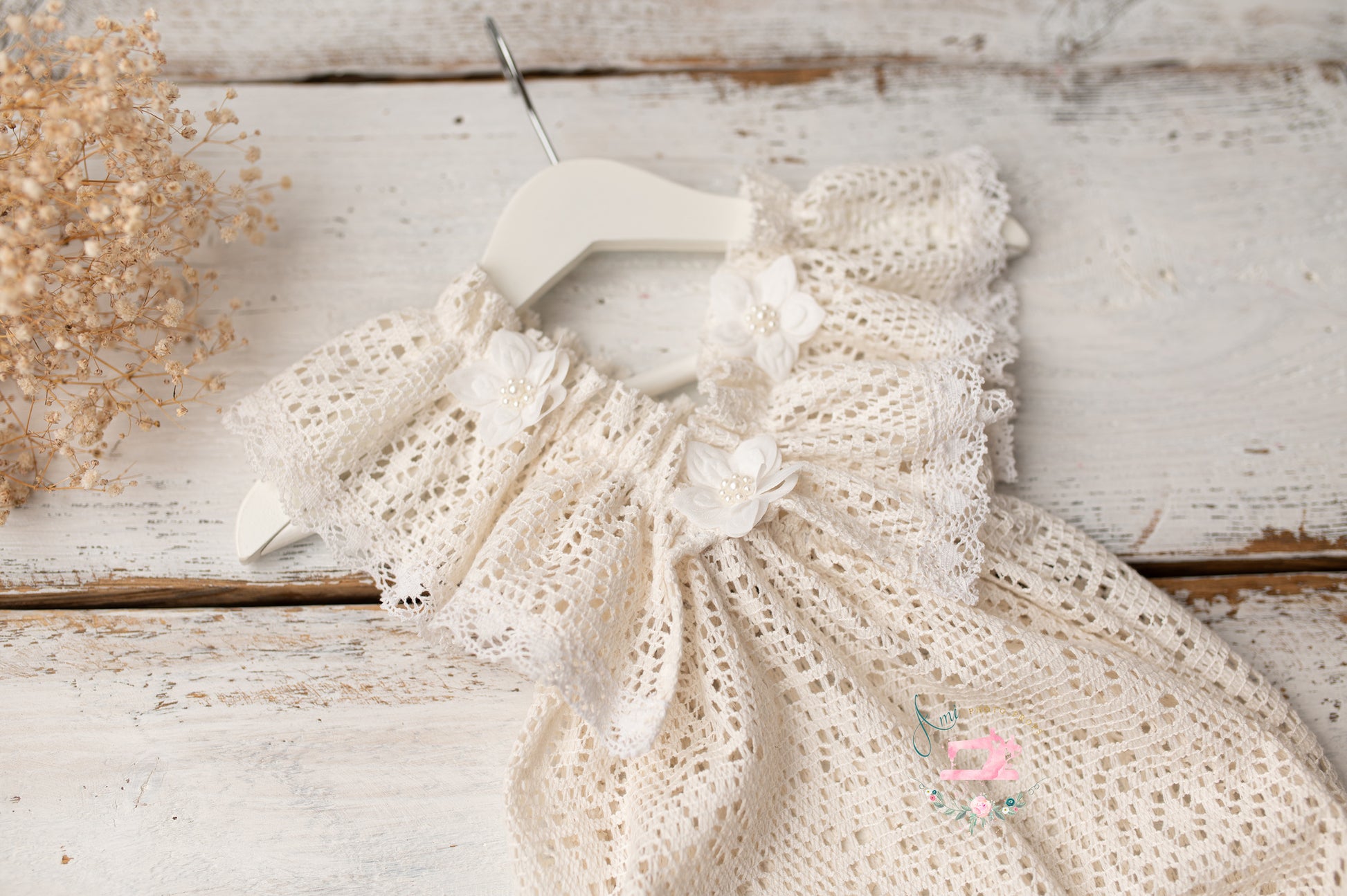 Made of elegant ecru lace, Boho style and more, perfect for a 6-12 month old baby.