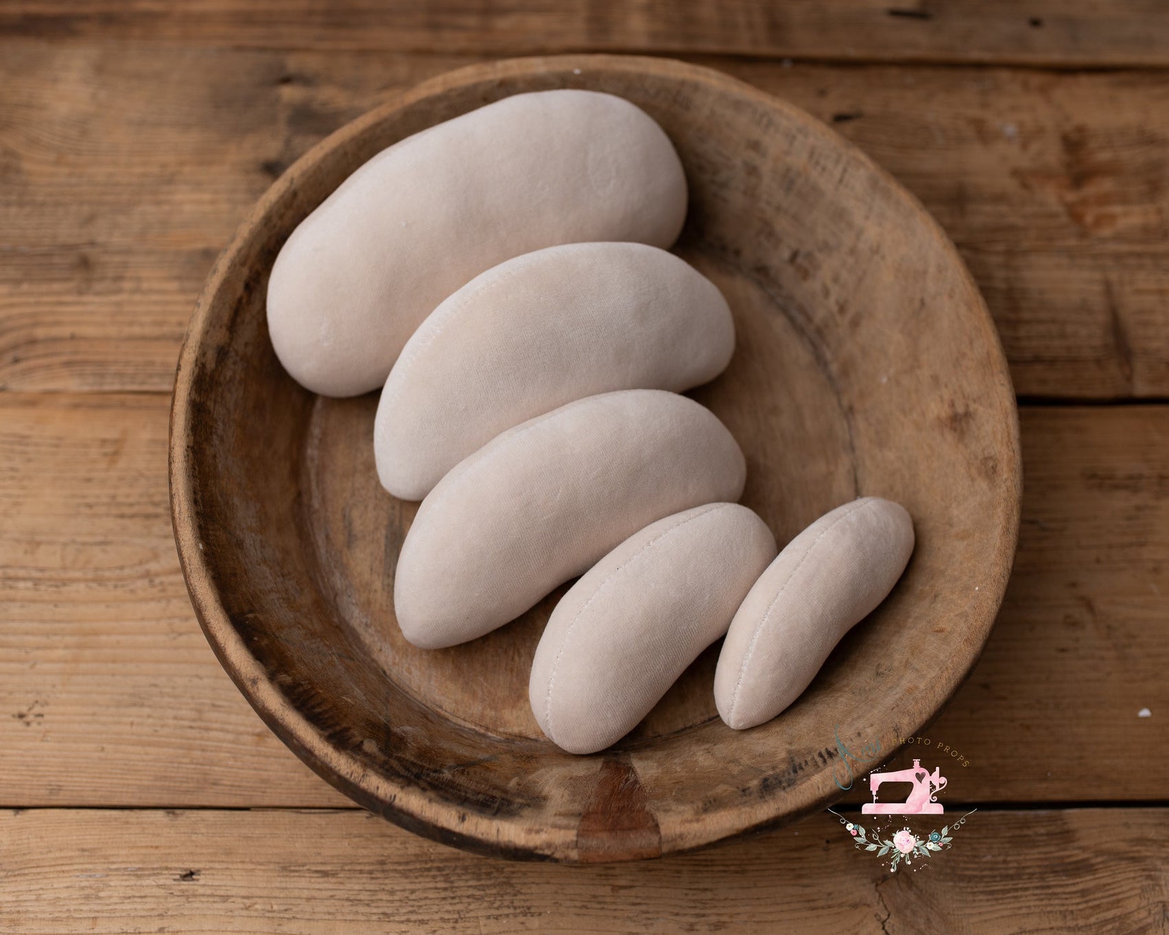 These bean bag pillows for the newborn position are made of delicate, light beige velvet fabric