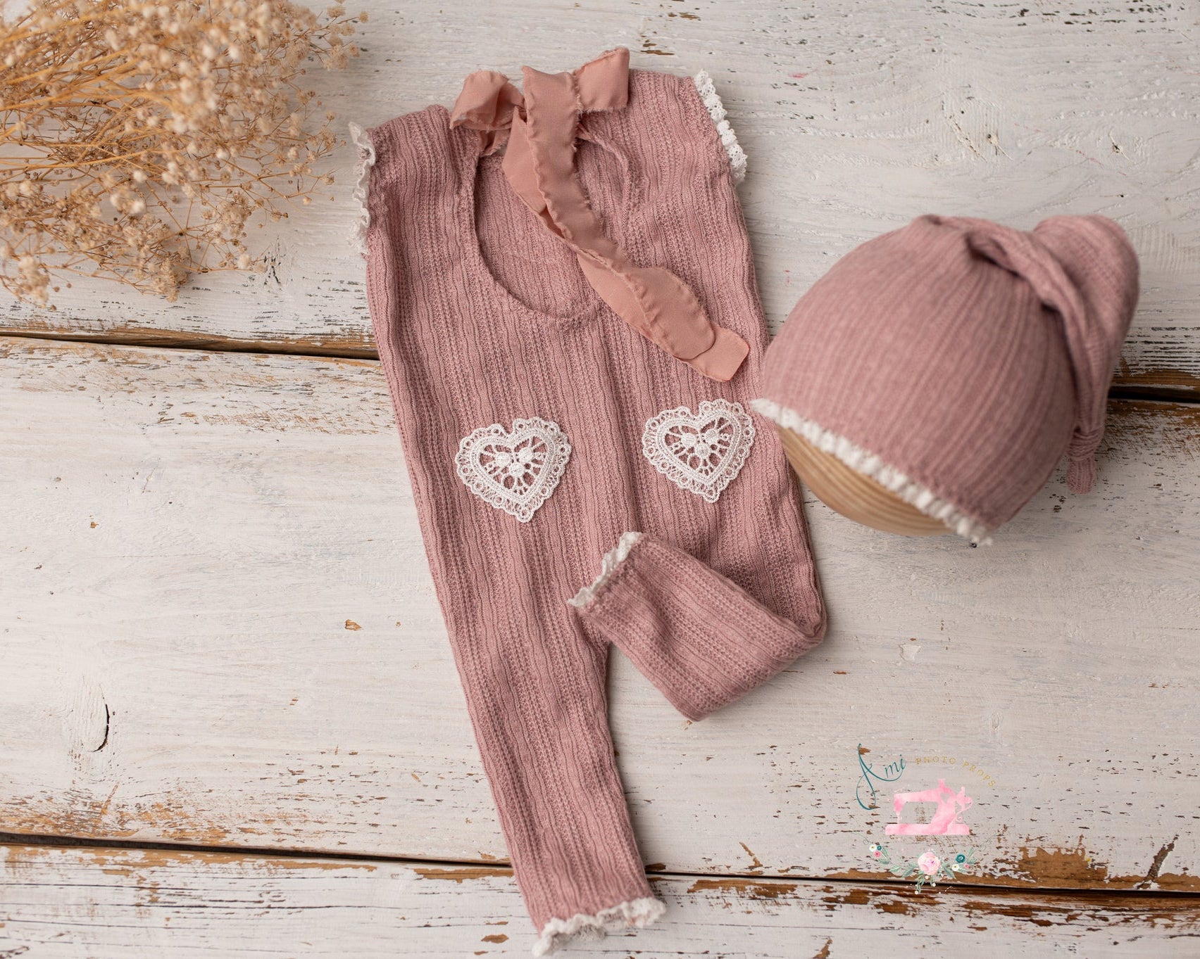 Made of elastic knitwear in dirty pink color, beautiful cream-colored applications